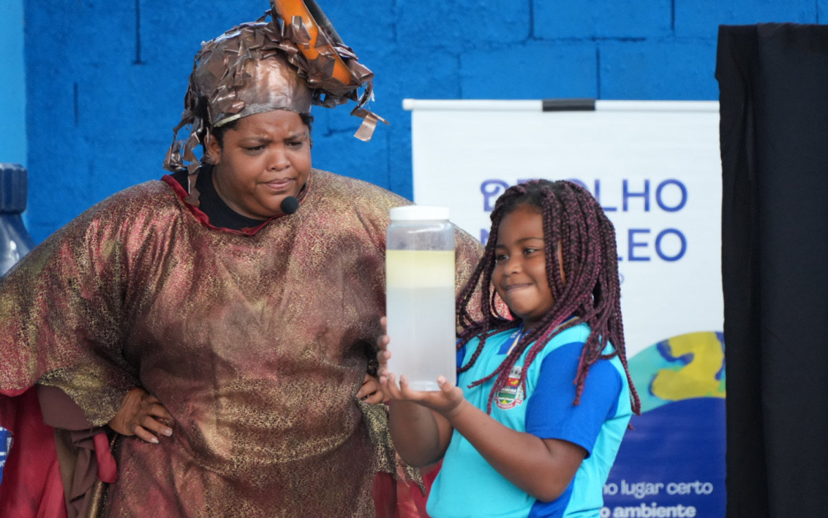 Além da entrega, os alunos da Escola Valéria de Mattos Fontes também puderam assistir à apresentação teatral “De olho na Oleosa”, sobre o descarte correto do óleo de cozinha, de forma lúdica e divertida. A ideia é que os alunos se tornem multiplicadores do conhecimento para os adultos dentro de casa.