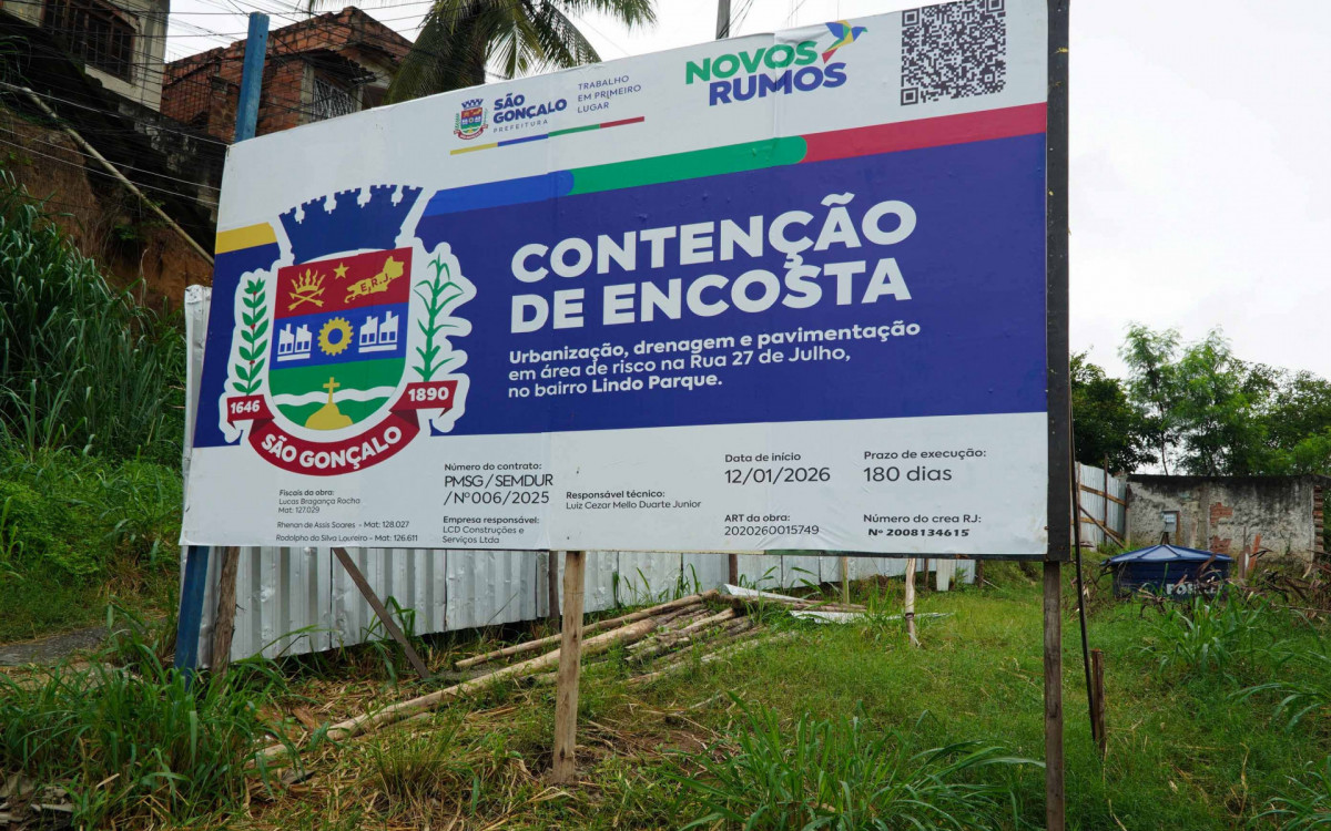 São Gonçalo - A Secretaria de Desenvolvimento Urbano da Prefeitura de São Gonçalo deu início às obras de contenção de encosta na Rua Vinte e Sete de Julho, no bairro Lindo Parque. O prazo de execução é de 180 dias. As obras incluem ainda urbanização, drenagem e pavimentação, além da implementação de um muro de contenção e de uma tela de alta resistência.