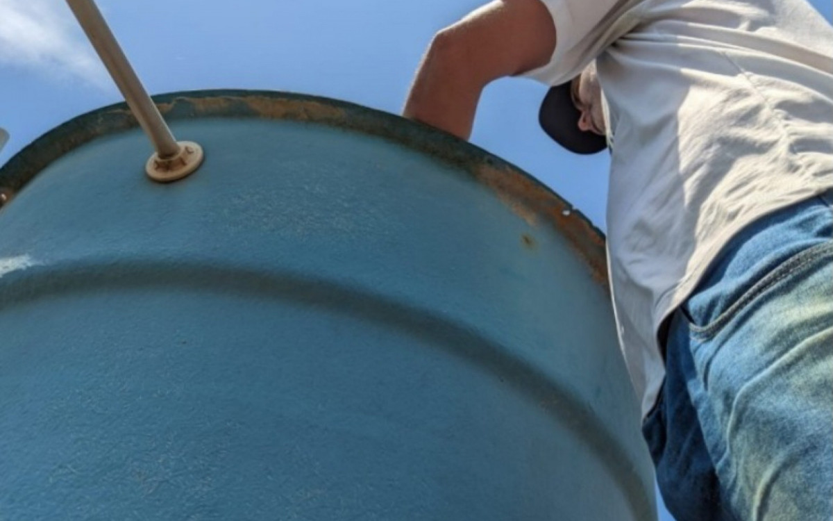 Caixa d?água também é checada durante as ações; sem proteção é um dos potenciais criadouros do Aedes aegypti Foto Divulgação