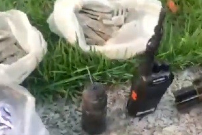 Com a dupla, a equipe policial apreendeu uma pistola cal. 9mm, granada e drogas.