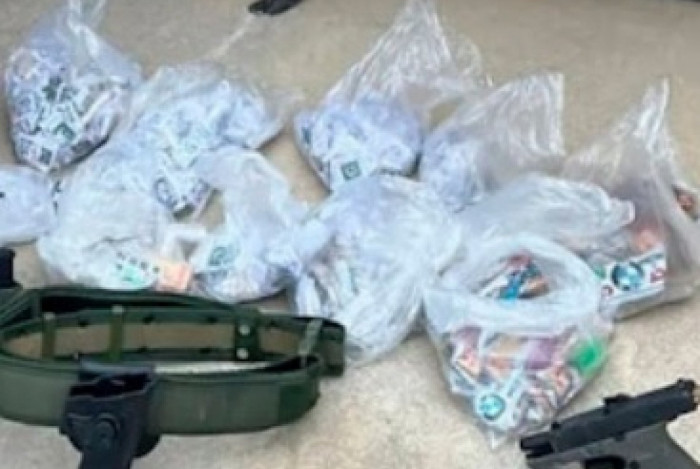 Uma pistola e drogas foram apreendidas. O suspeito, que não teve a identidade divulgada, estava conduzindo uma moto roubada que foi recuperada na ação.