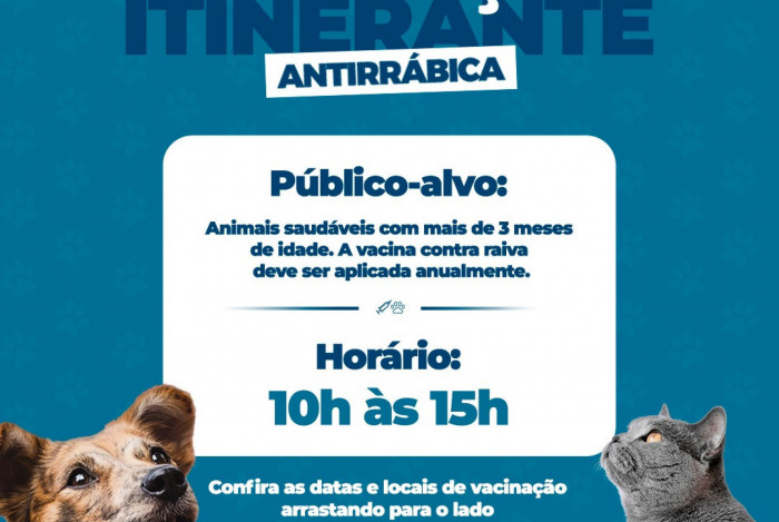 A campanha é destinada aos animais saudáveis com mais de 3 meses. A organização reforça que mesmo que o bichinho não tenha acesso à rua ou até mesmo contato com outros animais, manter as vacinas em dia é essencial. A vacina da raiva deve ser aplicada anualmente no animal.