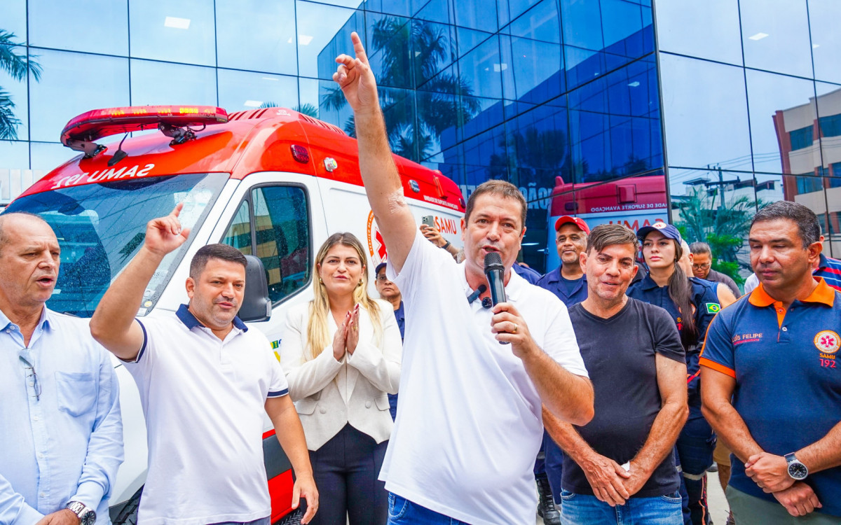 Prefeito Léo Vieira (centro) destacou que o reforço das novas ambulâncias vai salvar mais vidas e agilizar os atendimentos de emergência na cidade - Gilberto Rocha/ PMSJM