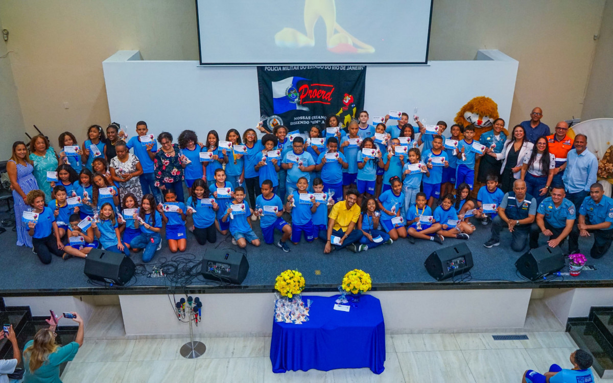 São João de Meriti - Alunos do 5º ano da Escola Municipal Professor Jansen Pereira De Melo, em São João de Meriti, concluíram as atividades do Programa Educacional de Resistência às Drogas e à Violência (Proerd). O programa da Polícia Militar promove cidadania, prevenção às drogas e à violência nas escolas.