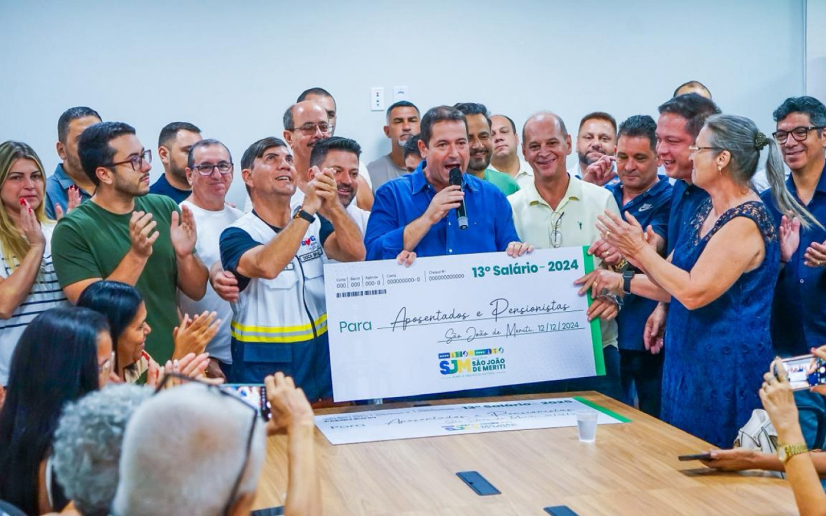 São João de Meriti - A Prefeitura de São João de Meriti realizou o pagamento integral do 13º salário dos aposentados e pensionistas. O depósito já havia sido anunciado no gabinete do prefeito Léo Vieira, na última semana, e contou com a presença da vice-prefeita, Dra. Letícia Costa, do presidente do Meriti Previ, Diego Irenaldo, do presidente da Câmara de Vereadores, Doca Brazão, demais vereadores e secretários municipais.