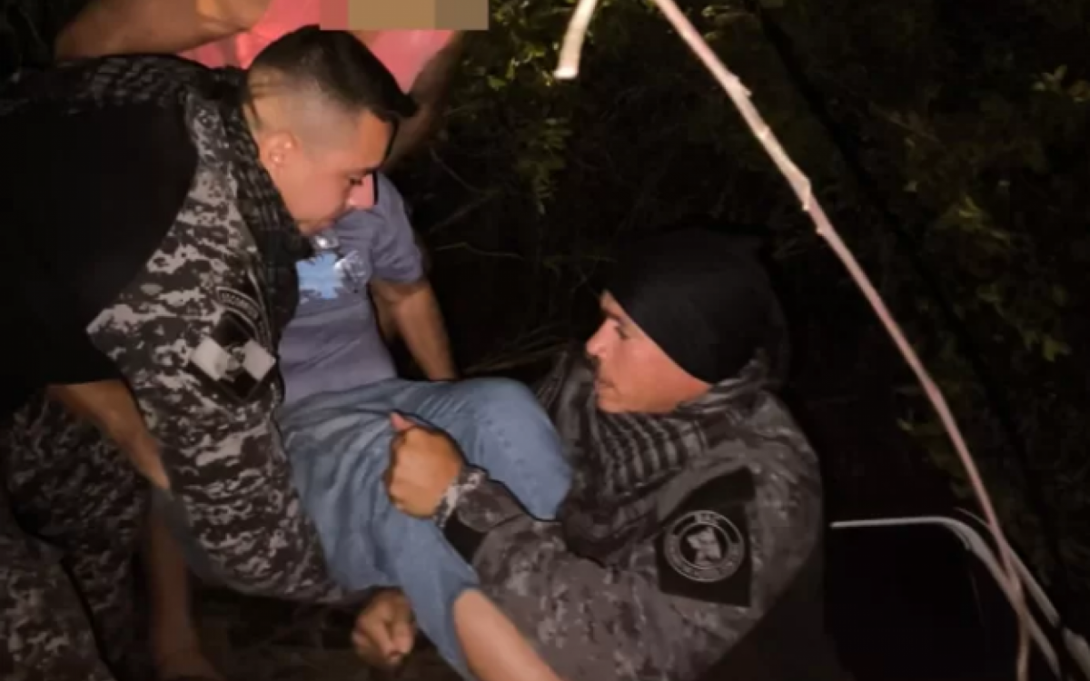 De acordo com a ocorrência, populares acionaram uma equipe da Polícia Militar que passava pelo local após presenciarem o veículo, uma Fiat Toro branca, capotado e com as portas travadas, preso à margem de um riacho.