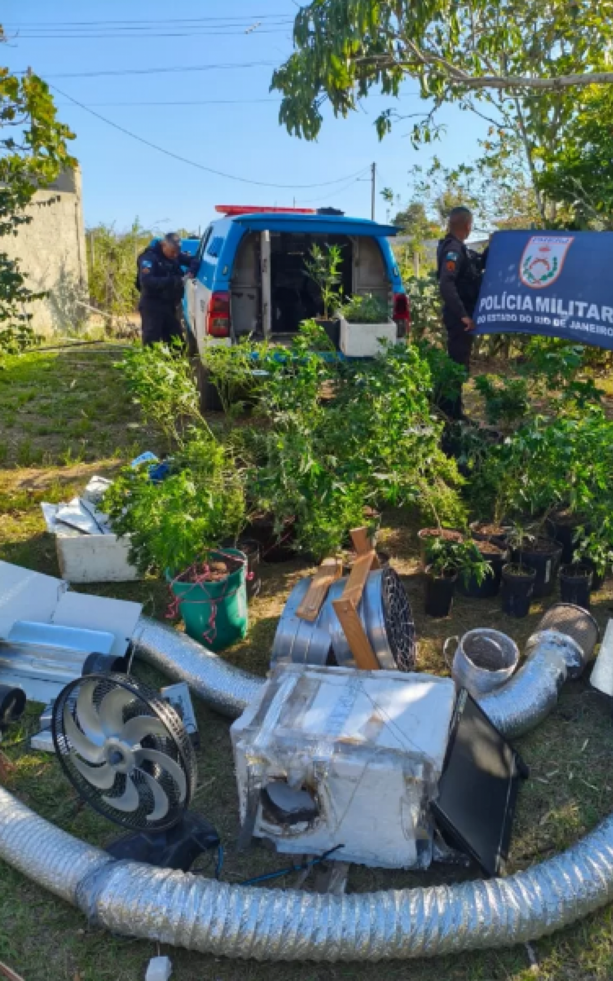 Durante a vistoria, foram localizadas duas estufas equipadas para cultivo, contendo aproximadamente 250 pés de maconha em diferentes estágios de crescimento. Também foram apreendidos equipamentos de iluminação e climatização, como cinco painéis de LED, dois refletores Protube, cinco reatores e dois temporizadores, além de um documento de identidade.