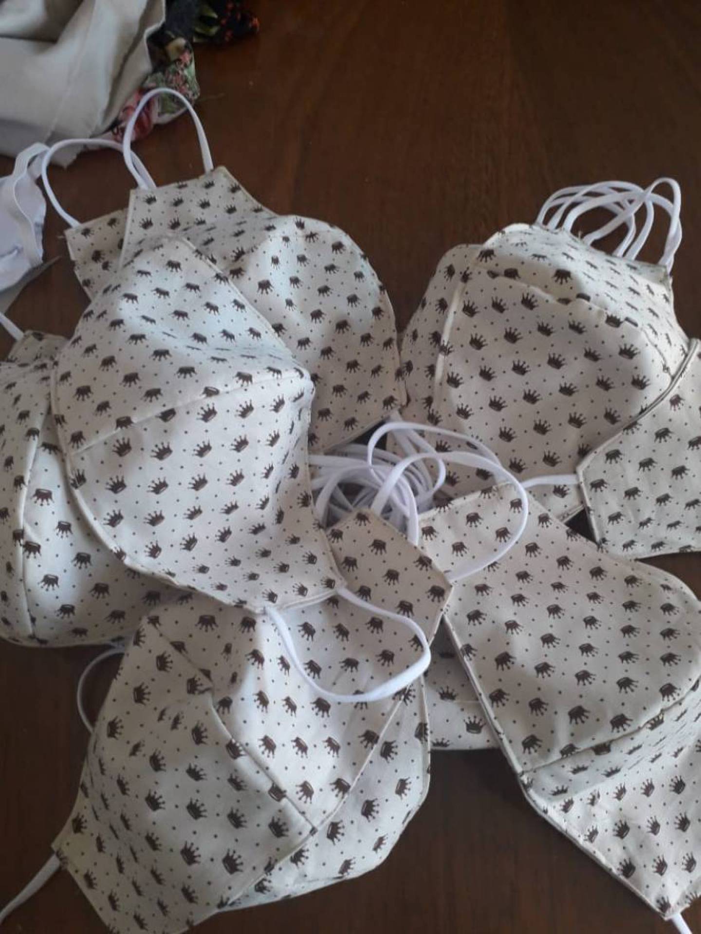 As máscaras são confeccionadas nas casas das integrantes do grupo, que seguem as normas de quarentena e isolamento social.