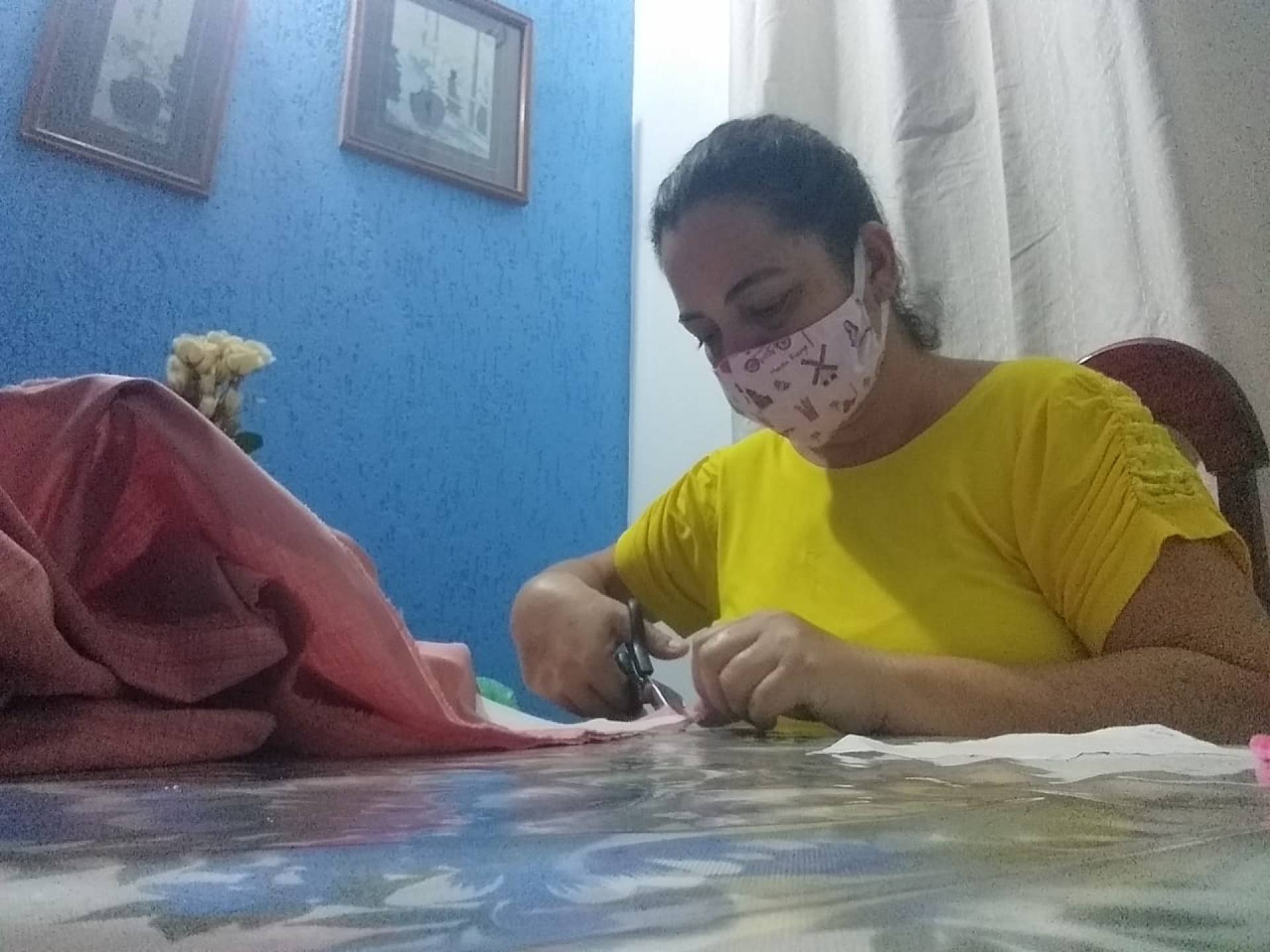 Seguindo as ordens de isolamento social, mulheres produzem máscaras que são distribuídas na cidade