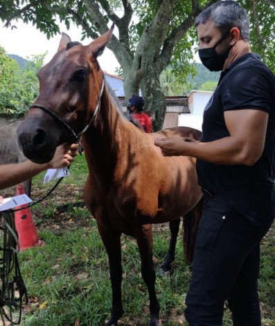 No último sábado, a Secretaria Municipal de Agricultura, Abastecimento e Pesca, realizou a vacinação antirrábica em equinos e muares na Basiléa, em Sampaio Corrêa.
