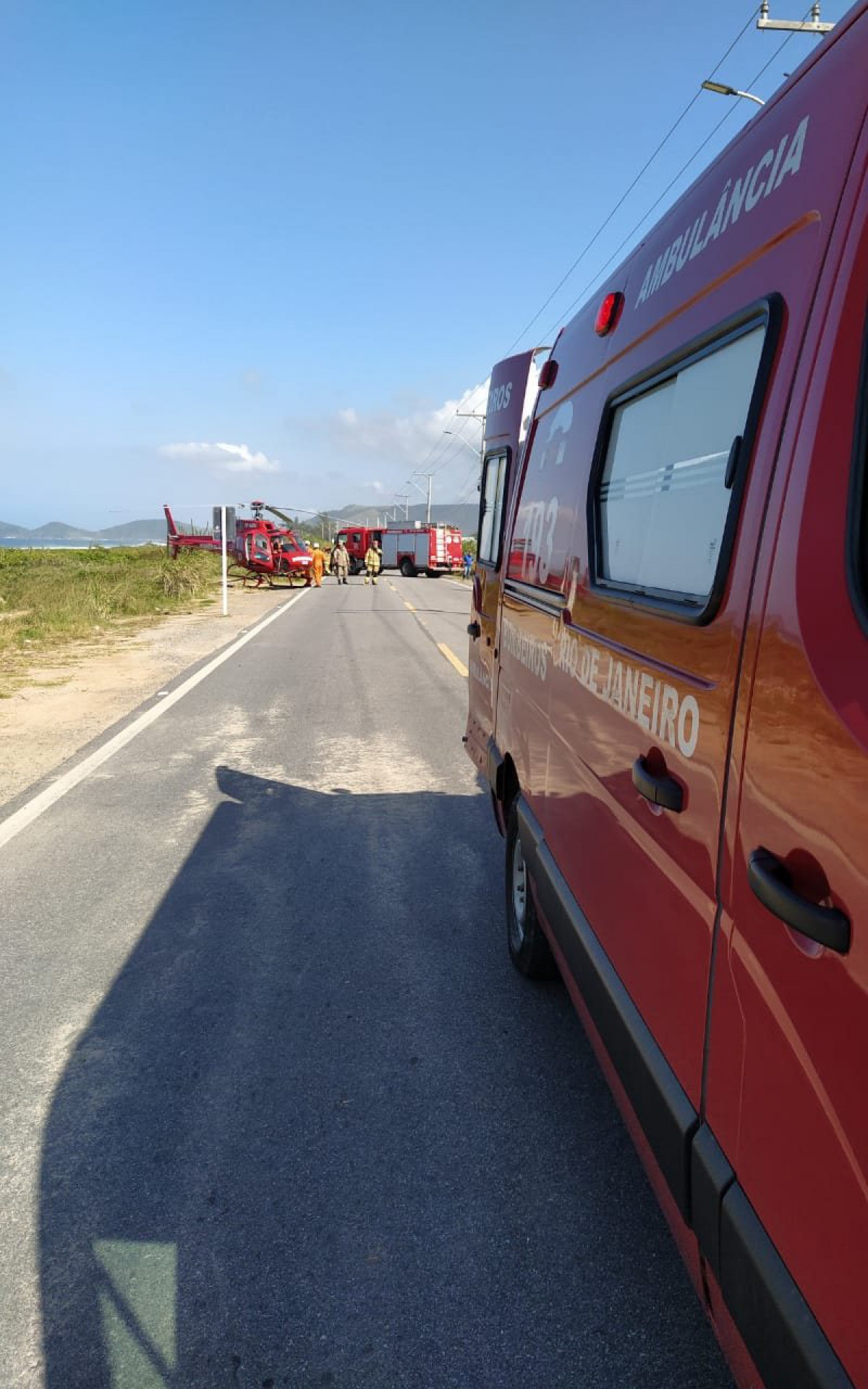 Colisão entre veículos deixa motociclista gravemente ferido na Avenida Beira Mar (RJ-102), no bairro Jaconé, em Saquarema, município da Região dos Lagos, na manhã desta quarta-feira (20). Não há informações de como ocorreu, apenas de que, segundo moradores, a estrada é perigosa e famosa por conta dos frequentes acidentes.