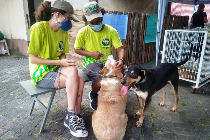 Voluntários do Parque Nacional da Serra dos Órgãos com cães do Canil da Prefeitura disponíveis para adoçãoVoluntários ICMBio-Parnaso