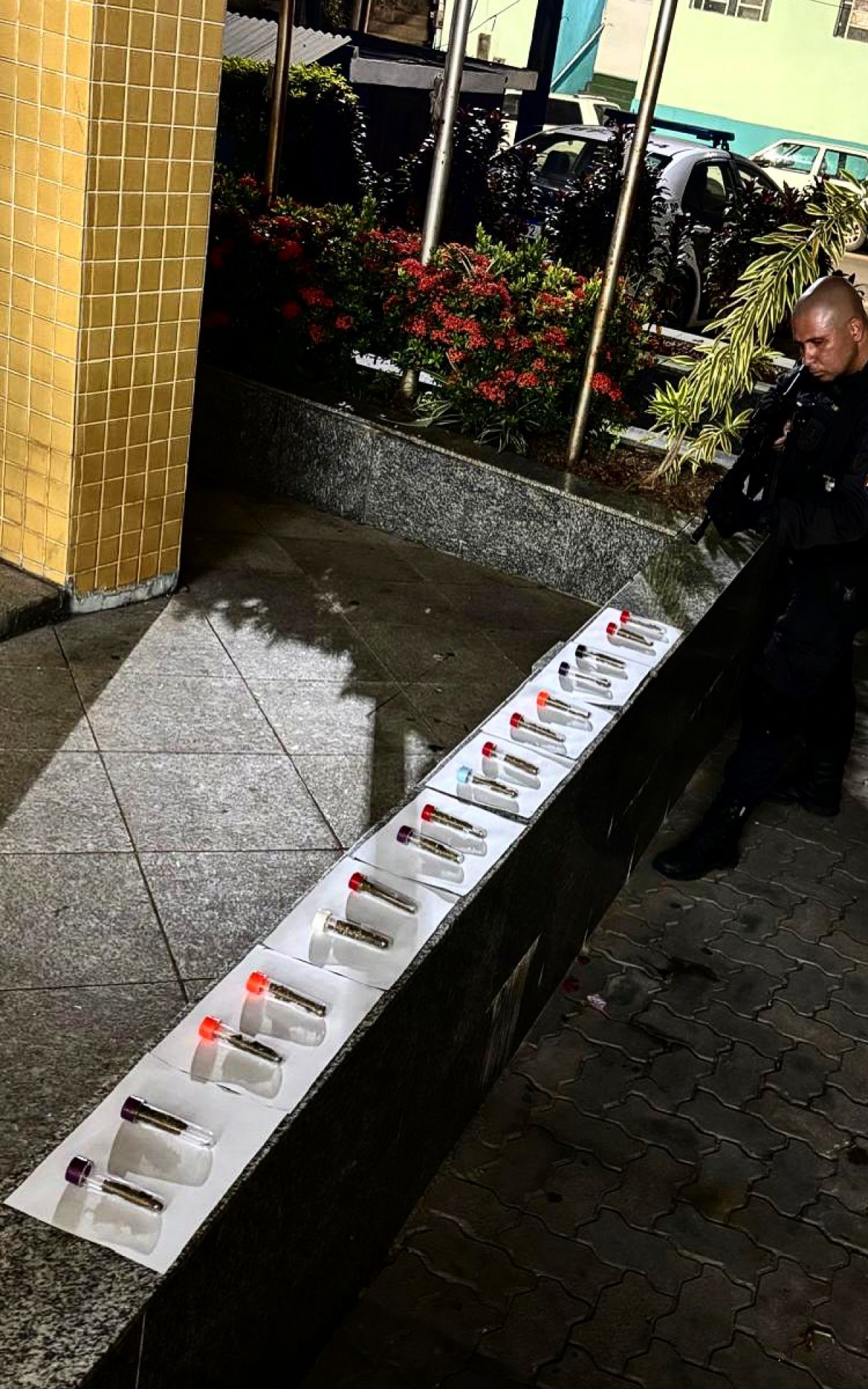 Segundo a PM, um evento não autorizado estava ocorrendo. Durante o patrulhamento, dois indivíduos avistaram as viaturas e fugiram para uma área de mata. Após uma busca detalhada no local chamado "Beco do 50", os agentes encontraram 16 gramas de maconha armazenadas em 16 tubos grandes.
