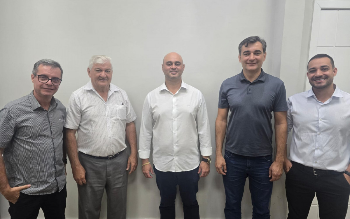 Na ordem: o secretário de Indústria, Comércio e Serviços de Três Rios, Márcio Assis; o diretor da Perforpack, Gerson Almeida; o prefeito Jonas Dico; o diretor da Perforpack, Robson Almeida; e o consultor de negócios Rafael EspíndolaFoto: Divulgação/PMTR